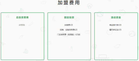 在百果园官网上,倘若是选择直接加盟,加盟商需准备至少23万元现金,包括5万元加盟费、6万元招牌设备信息费、6万元装修款、3万元保证金、3万元商品预付款。